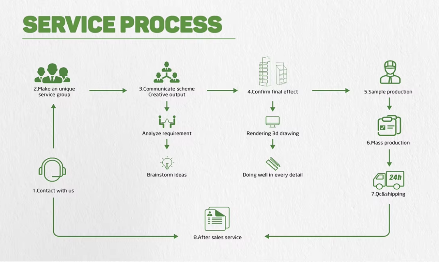 A: We usually design the display structures by easily assembled, and offer a piece of manual paper to each packaging box. We will also take a video to help our clients.